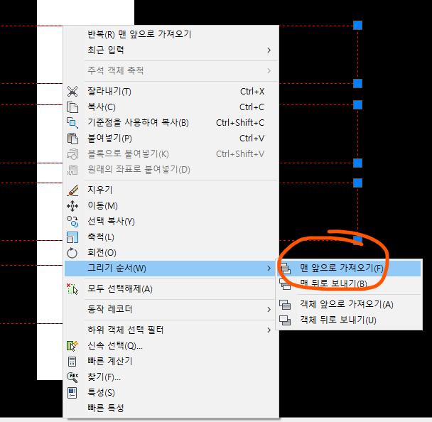 DRAWORDER -> 객체선택 -> F(맨 앞으로)