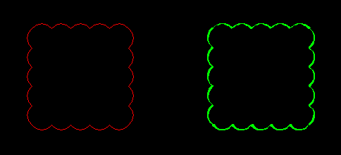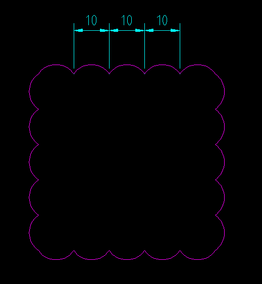 호의 길이를 잘 지정해 주어야 보기좋은 구름수정기호를 만들 수 있습니다. 숫자가 너무 작으면 직선처럼 출력되어 수정기호인지 네모인지 구분이 안되고, 숫자가 너무 크면 이상한 커피콩빵모양으로 생성되게 됩니다. 호의 최소길이와 최대길이는 같게 해도 무방합니다. 아래 그림은 호의 최소길이, 최대길이를 10으로 지정하여 구름수정기호 REVCLOUD를 생성한 모습입니다.