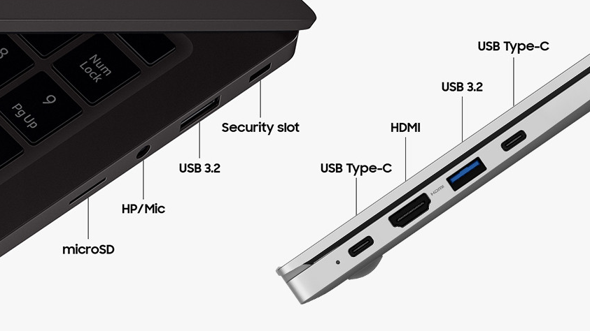 노트북의 옆면에는 다양한 포트들이 있습니다.