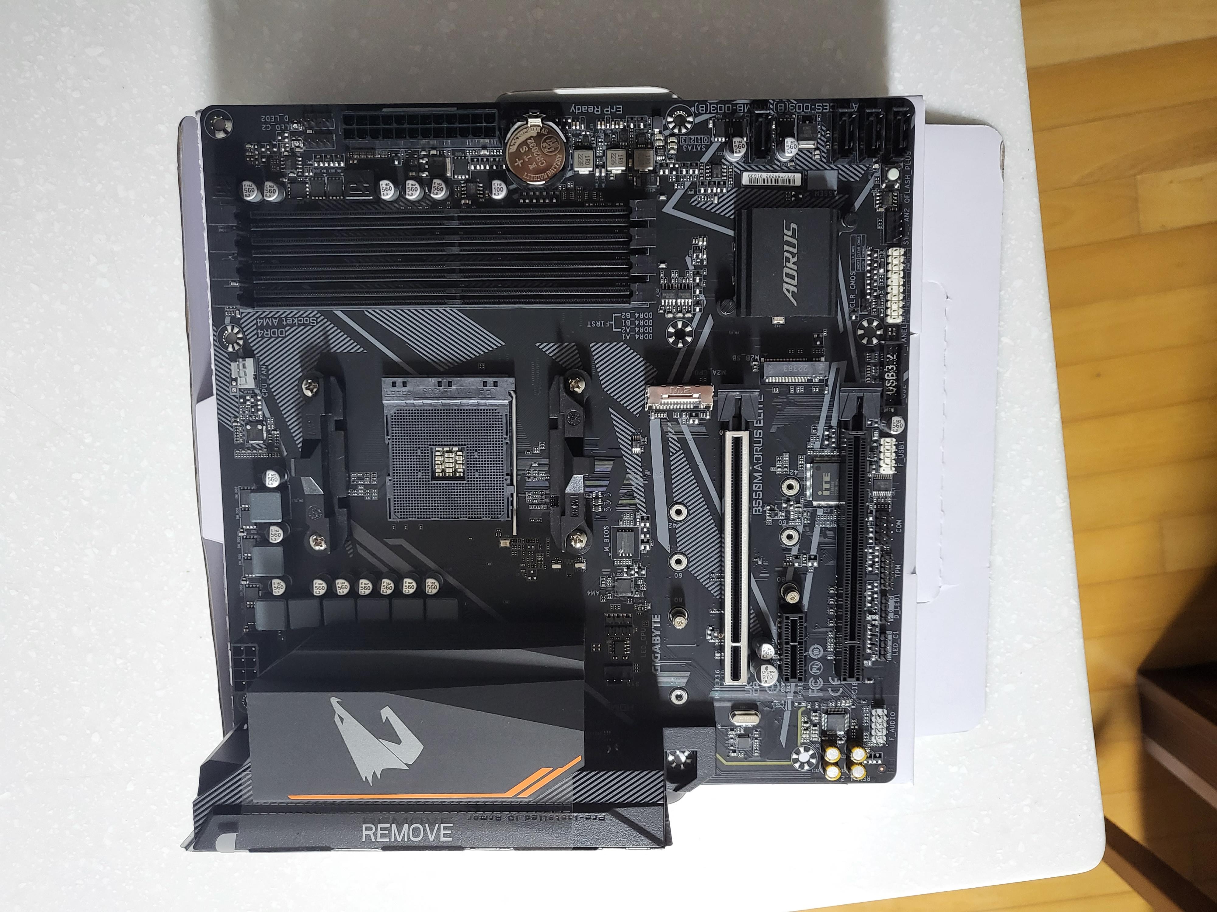 포장이 아주 잘 되어있습니다. 비닐을 뜯어보니 제품이 깨끗합니다. 방열판이 큰것이 눈에 띄고, 램 장착슬롯이 4개, 라이젠5600을 사용할 수 있는 AM4 시피유소켓, SSD M.2를 사용할 수 있는 슬롯이 있습니다. 나머지는 저도 컴알못이기 때문에 잘은 모르지만 동봉된 설명서와 유튜브만 있다면 조립 가능입니다.